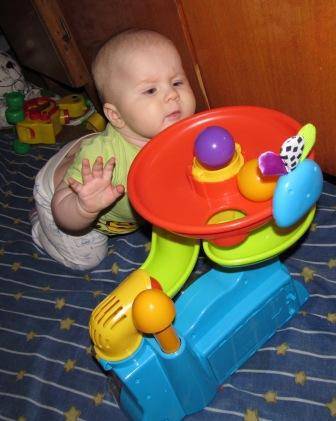 почти поймала. Хотя чаще она ручкой перекрывает выход для шариков...